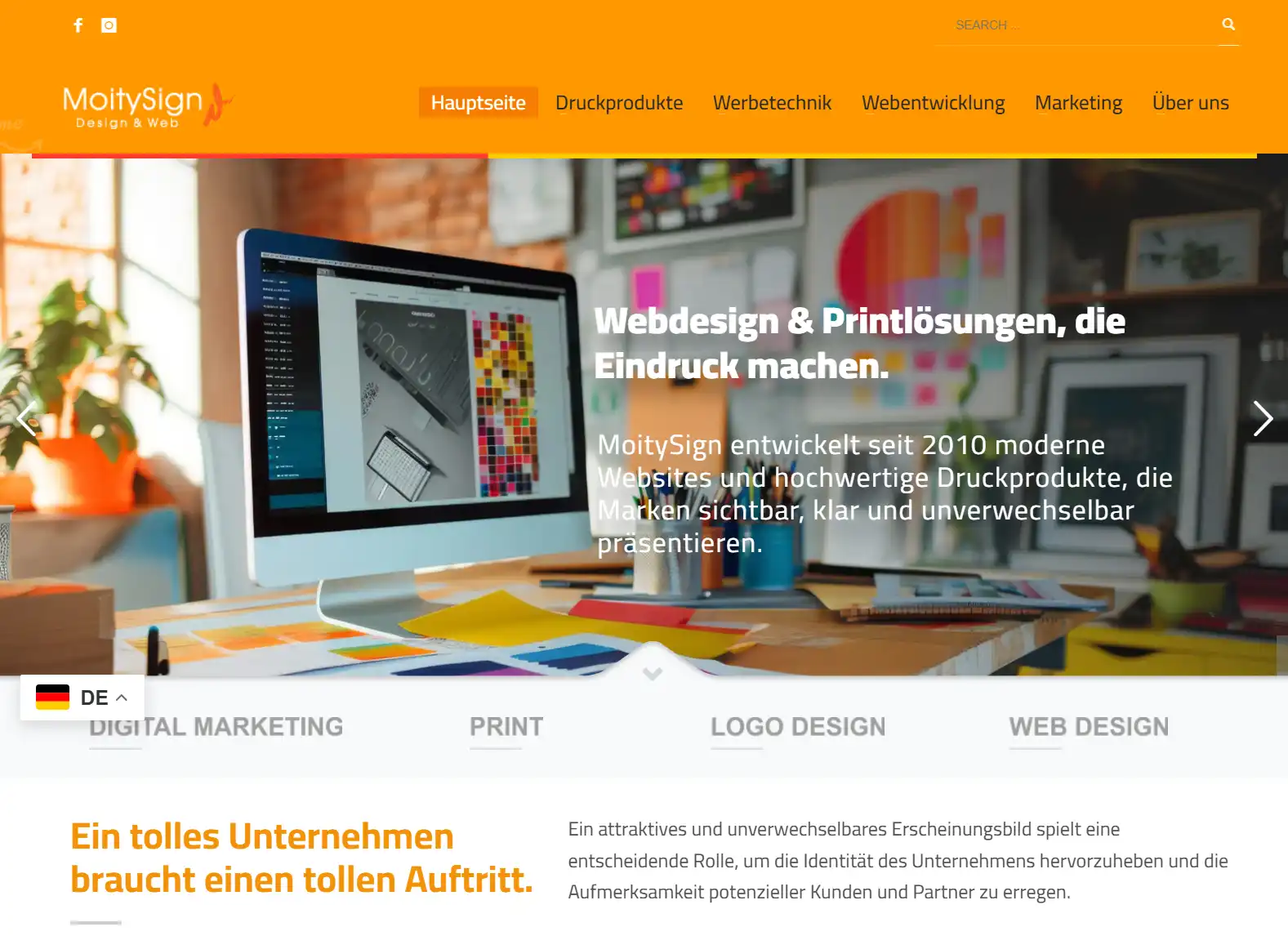 Eine Website, die sich neben hochwertigen Druckdesigns auch auf die Zukunft des digitalen Designs und kreative Lösungen spezialisiert.