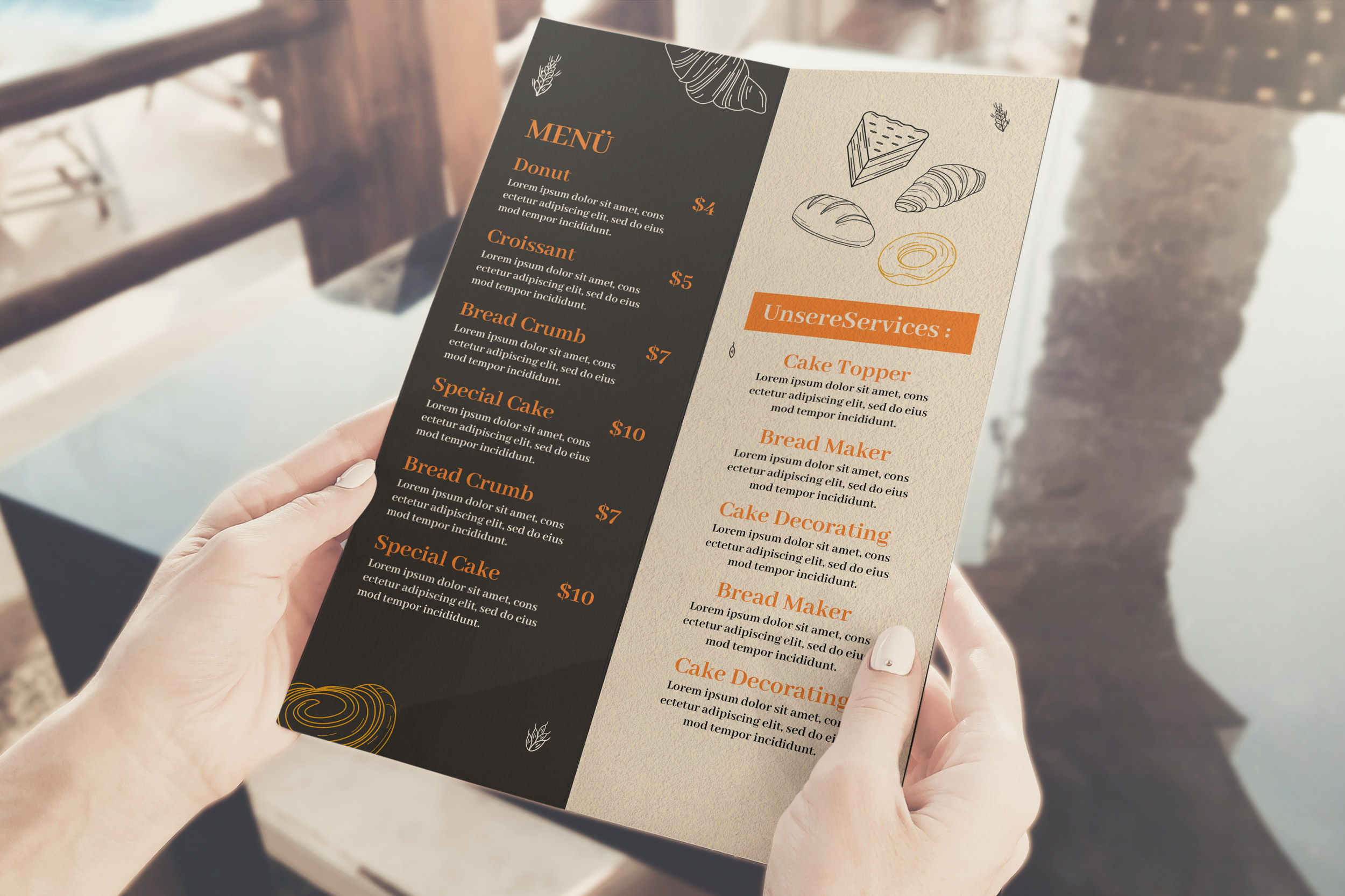 Von der eleganten Fine-Dining-Karte bis hin zur modernen Bistro- oder Café-Speisekarte – jedes Design wird individuell auf Ihr Konzept abgestimmt. Dabei legen wir großen Wert auf eine klare Struktur, hochwertige Optik und leichte Lesbarkeit.